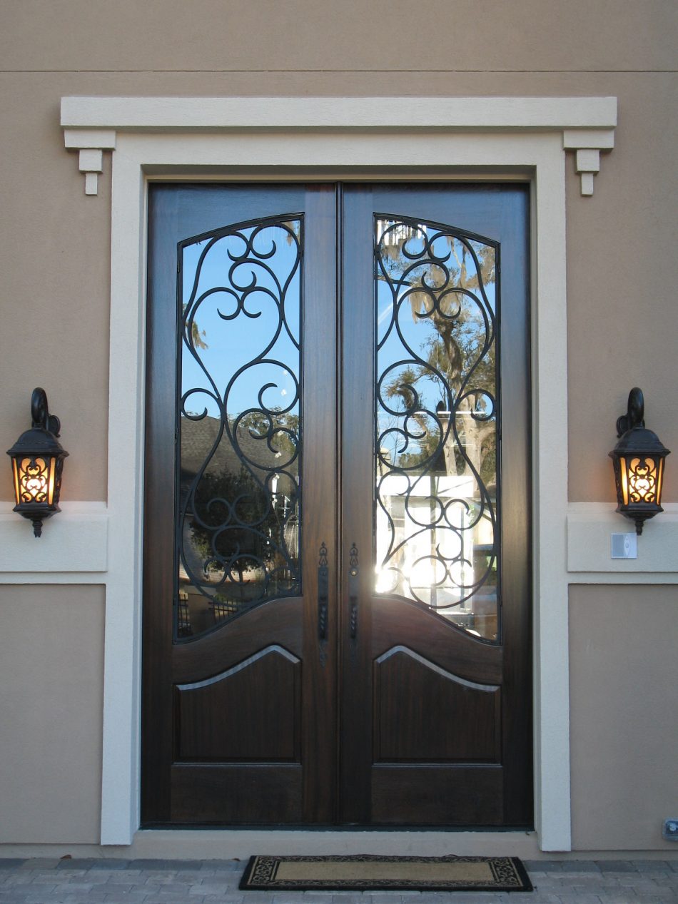 Красивые металлические двери со стеклом устанавливаются в Малоярославце на входах в загородные дома, коттеджи, рестораны, магазины. Если на лестничной площадке предусмотрена тамбурная прочная дверь, тол остекленную модель можно купить и для квартиры. Для увеличения уровня противовзломной защиты зона остекления закрывается кованой декоративной решеткой, соединенной с железным листом внутри створок.